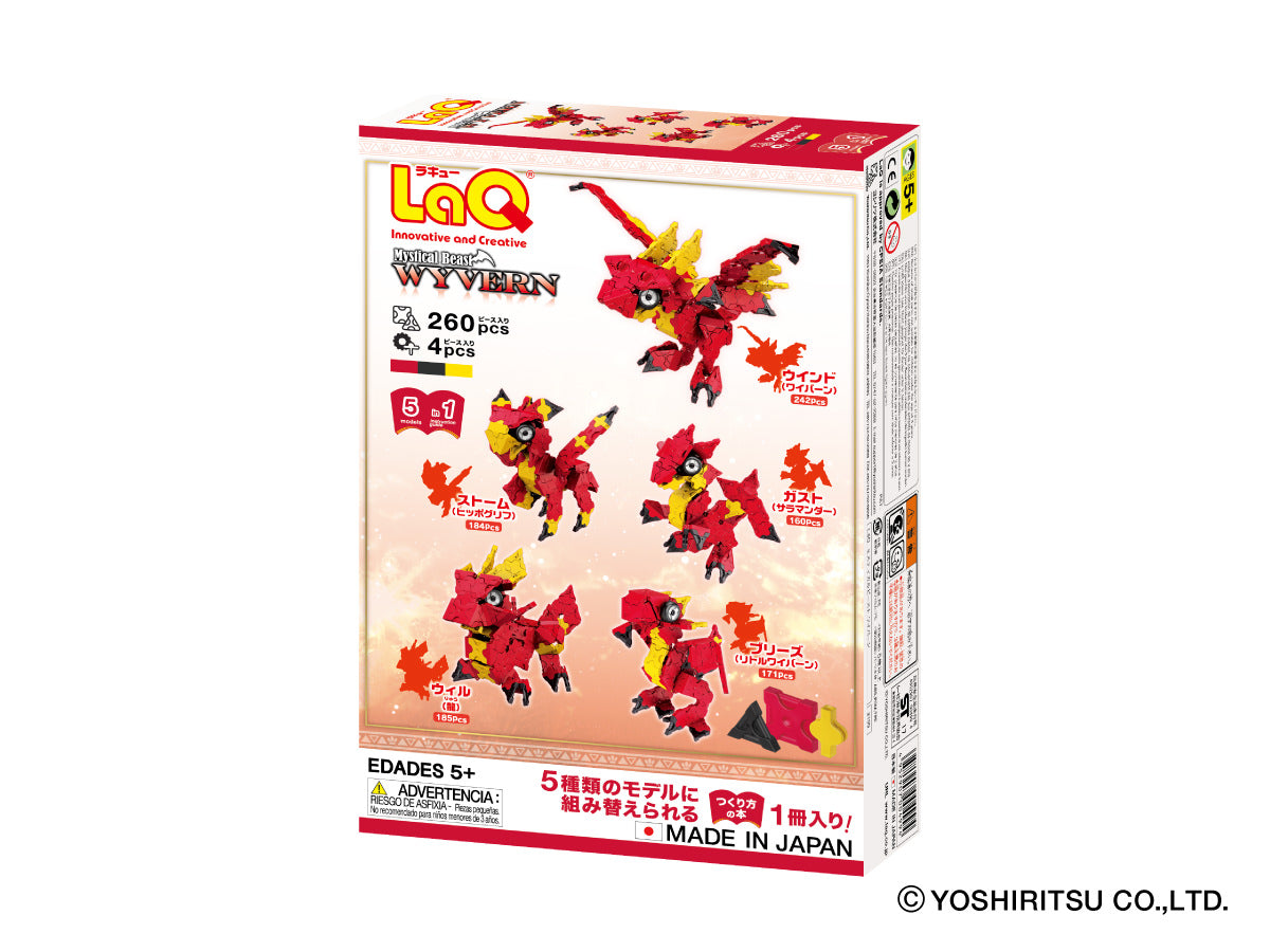 Delve into the world of the Mystical Beasts of LaQ! Build 5 different types of red legendary beasts, featuring the Fiery Red Wyvern!