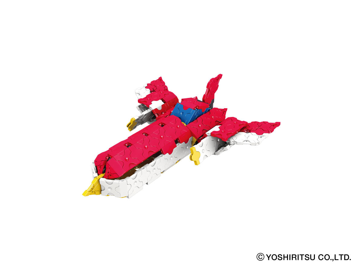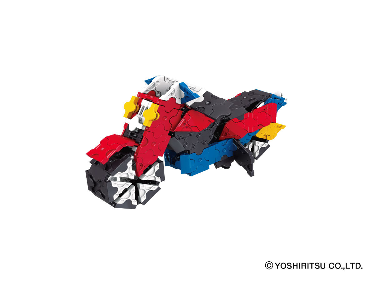 650 normal parts are included in the package. The enclosed guide provides instructions for 22 models you can build. Recommended for ages of 5 and above. Made in Japan. SNAP! CLICK! and CREATE!