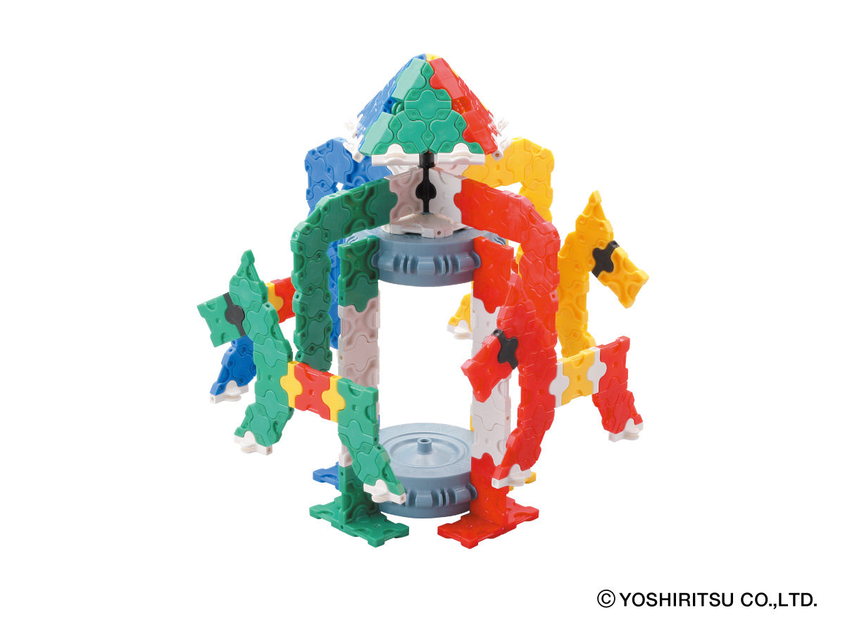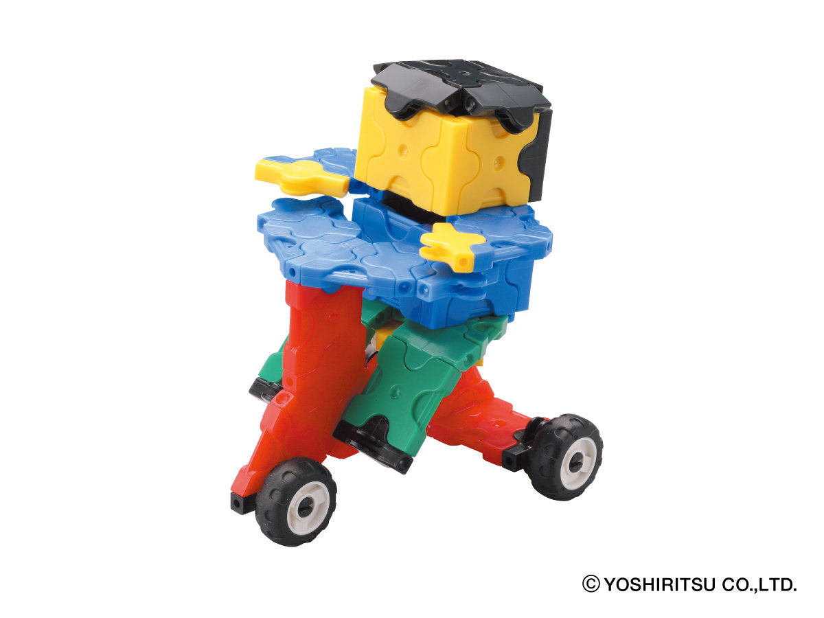 650 normal parts are included in the package. The enclosed guide provides instructions for 12 models you can build. Recommended for ages of 5 and above. Made in Japan. SNAP! CLICK! and CREATE!