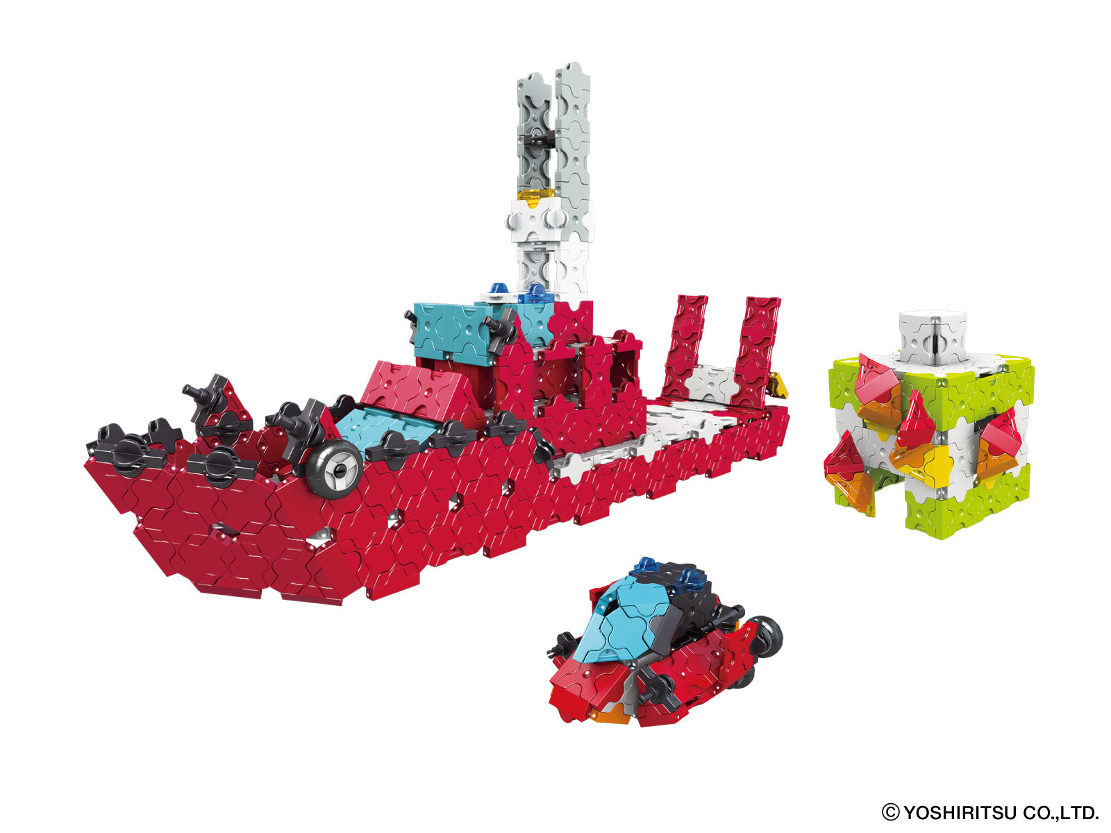 1040 normal parts and 57 special parts are included in the package. The enclosed guide provides instructions for 15 models you can build. Recommended for ages of 7 and above. Made in Japan. SNAP! CLICK! and CREATE!