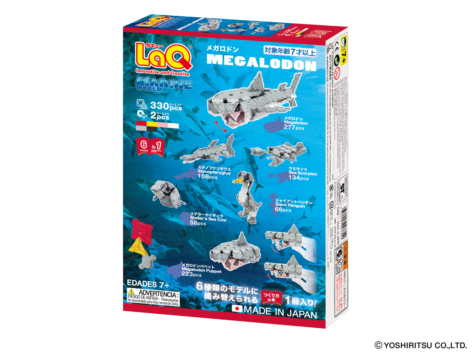 330 normal parts and 2 special parts are included in the package. The enclosed guide provides instructions for 6 different models you can build. Recommended for ages 7 and above. Made in Japan. SNAP! CLICK! and CREATE!