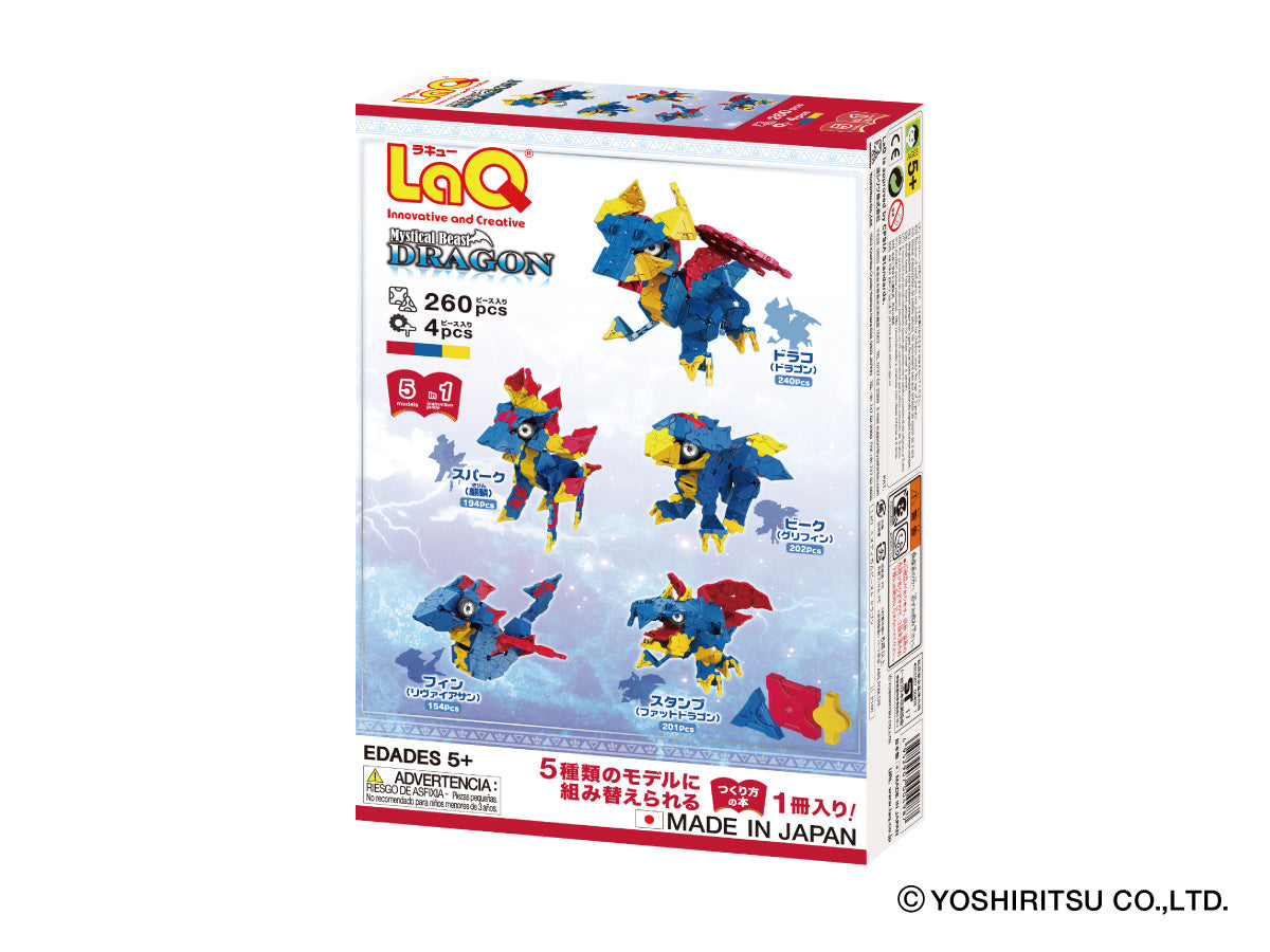 Delve into the world of the Mystical Beasts of LaQ! Build 5 different types of blue legendary beasts, featuring the Dragon!