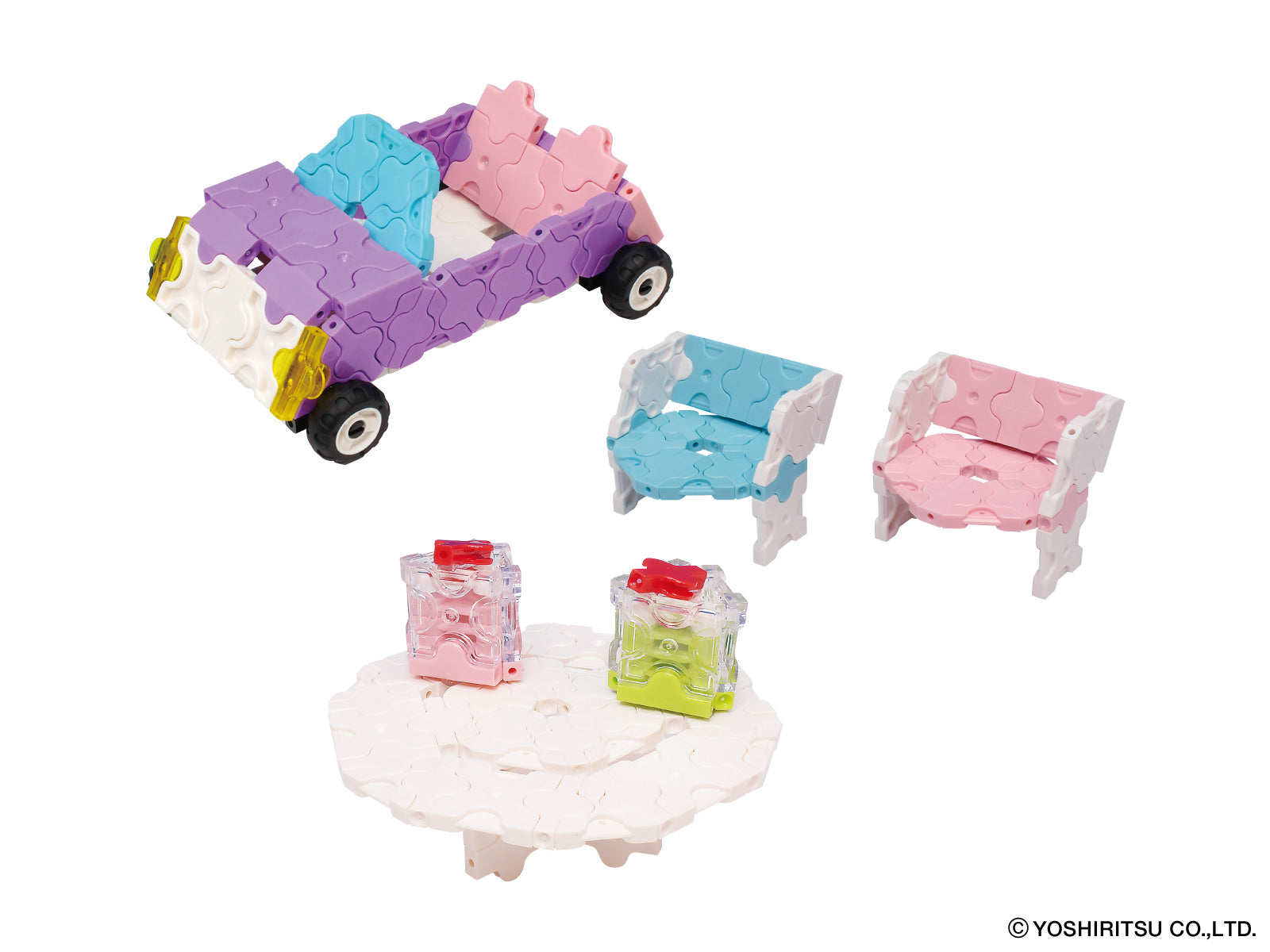 175 normal parts are included in the package. The enclosed guide provides instructions for 6 models you can build. Recommended for ages of 5 and above. Made in Japan. SNAP! CLICK! and CREATE!