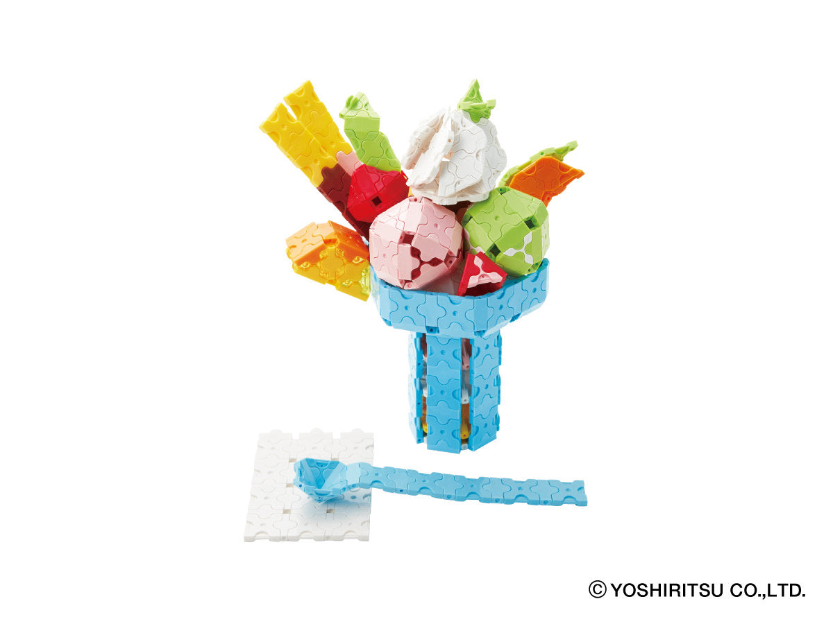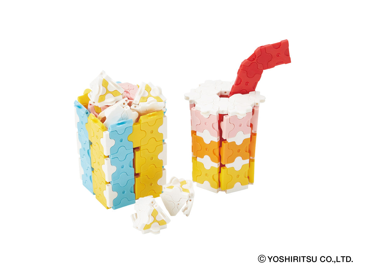 825 normal parts are included in the package. The enclosed guide provides instructions for 15 models you can build. Recommended for ages 5 and above. Made in Japan. SNAP! CLICK! and CREATE!